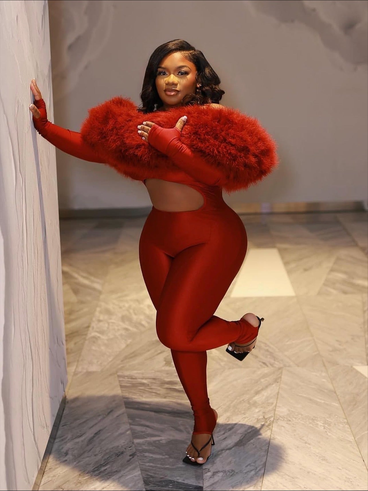 Burgundy Fur Romper